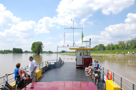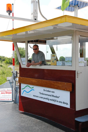 In tegenstelling tot het veer in Dieren en Brummen die vandaag uit de vaart zijn genomen heeft het voetveer Rheden geen problemen met de veerstoep, die is hoog en lang genoeg.